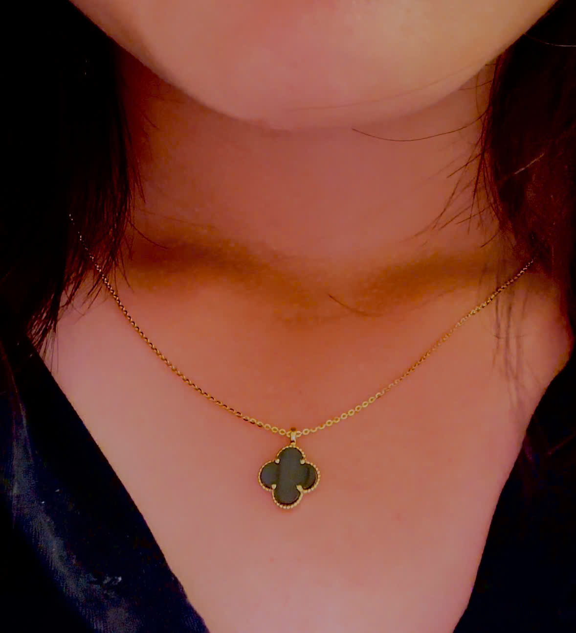 Dây chuyền vàng 18k đi kèm mặt cỏ 4 lá hột đen